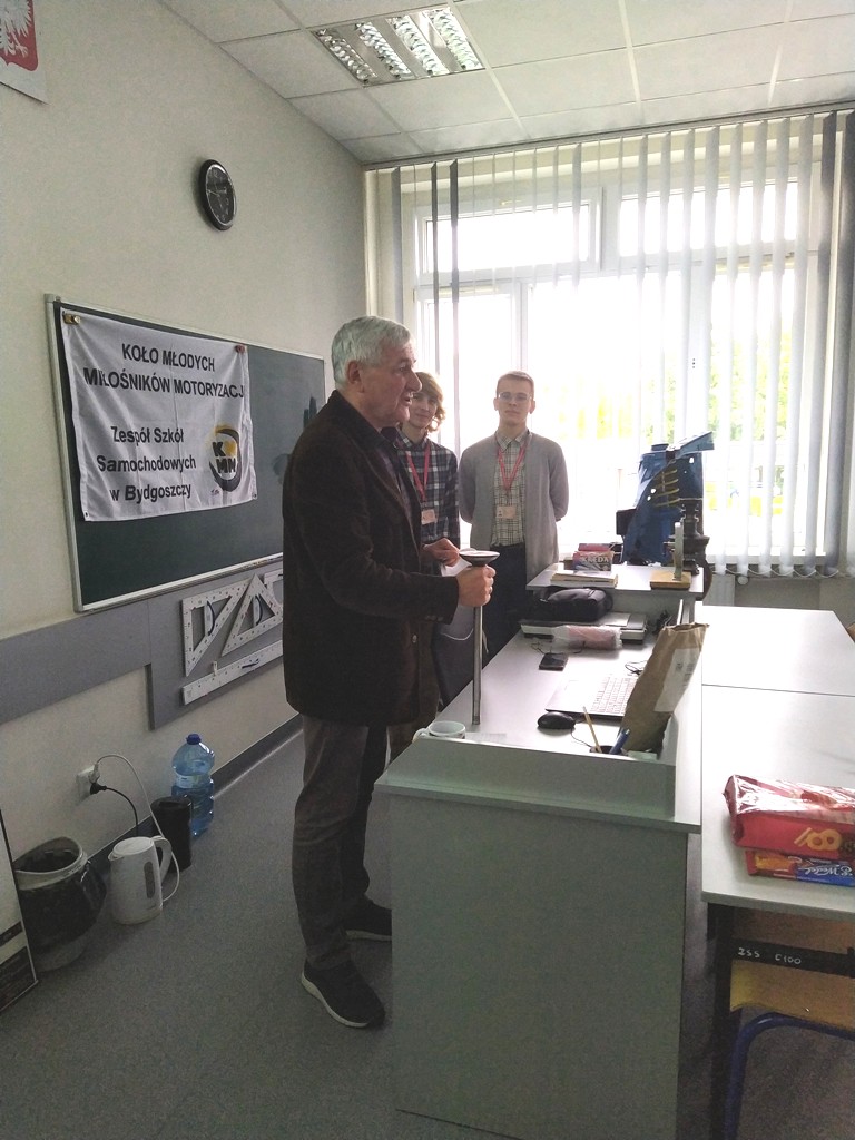 Zainaugurowaliśmy nowy Rok Szkolny 2025/2026, a opiekun Koła mgr inż. Tomasz Łasecki naświetlił planowane działania na nowy rok szkolny. Odwiedził nas również z dobrym słowem na "dzień dobry" Pan wicedyrektor mgr Krzysztof Król, zachęcając do licznych i owocnych spotkań i nowych inicjatyw. Oficjalne otwarcie działalności odbyło się poprzez trzy uderzenia laski marszałkowskiej przez emerytowanego opiekuna i wicedyrektora Szkoły mgr inż. Ireneusza Kulczyka. Laską był tym razem zawór od silnika spalinowego lokomotywy kolejowej. Wszystko to w towarzysko-piknikowej atmosferze przy herbacie, ciastkach i cukierkach. Wykład inauguracyjny też musiał się odbyć. Poprowadził go opiekun - emeryt, a tematem była relacja z jego prywatnej wizyty w Muzeum Motoryzacji WENA w Oławie. Koło Młodych Miłośników Motoryzacji ma charakter luźno - towarzysko - motoryzacyjnych spotkań, których celem jest skupienie zainteresowanych motoryzacją uczniów i uczennic, spotkań bez zacięcia lekcyjnego, bez trudnych zadań czy obowiązków. Po prostu bawimy się tym, co na rynku motorowerów, motocykli i samochodów się dzieje. Oczywiście w sytuacjach trudnych zawsze oferujemy pomoc w postaci wyjaśnienia, wytłumaczenia sobie zagadnień z dowolnego przedmiotu nauczania, na zasadzie samopomocy koleżeńskiej. Zachęcamy więc wszystkich uczniów, szczególnie z klas pierwszych do kontaktu z opiekunem Koła.