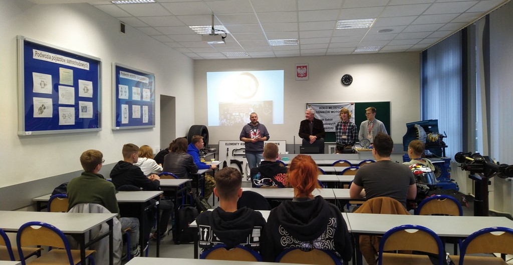Zainaugurowaliśmy nowy Rok Szkolny 2025/2026, a opiekun Koła mgr inż. Tomasz Łasecki naświetlił planowane działania na nowy rok szkolny. Odwiedził nas również z dobrym słowem na "dzień dobry" Pan wicedyrektor mgr Krzysztof Król, zachęcając do licznych i owocnych spotkań i nowych inicjatyw. Oficjalne otwarcie działalności odbyło się poprzez trzy uderzenia laski marszałkowskiej przez emerytowanego opiekuna i wicedyrektora Szkoły mgr inż. Ireneusza Kulczyka. Laską był tym razem zawór od silnika spalinowego lokomotywy kolejowej. Wszystko to w towarzysko-piknikowej atmosferze przy herbacie, ciastkach i cukierkach. Wykład inauguracyjny też musiał się odbyć. Poprowadził go opiekun - emeryt, a tematem była relacja z jego prywatnej wizyty w Muzeum Motoryzacji WENA w Oławie. Koło Młodych Miłośników Motoryzacji ma charakter luźno - towarzysko - motoryzacyjnych spotkań, których celem jest skupienie zainteresowanych motoryzacją uczniów i uczennic, spotkań bez zacięcia lekcyjnego, bez trudnych zadań czy obowiązków. Po prostu bawimy się tym, co na rynku motorowerów, motocykli i samochodów się dzieje. Oczywiście w sytuacjach trudnych zawsze oferujemy pomoc w postaci wyjaśnienia, wytłumaczenia sobie zagadnień z dowolnego przedmiotu nauczania, na zasadzie samopomocy koleżeńskiej. Zachęcamy więc wszystkich uczniów, szczególnie z klas pierwszych do kontaktu z opiekunem Koła.